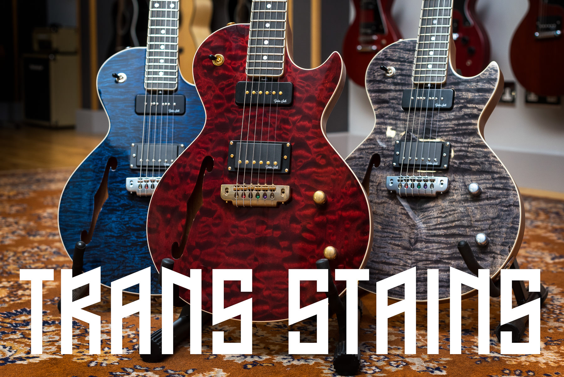 An always-available range of stock trans colours, to enhance the natural beauty of the wood of your guitar.